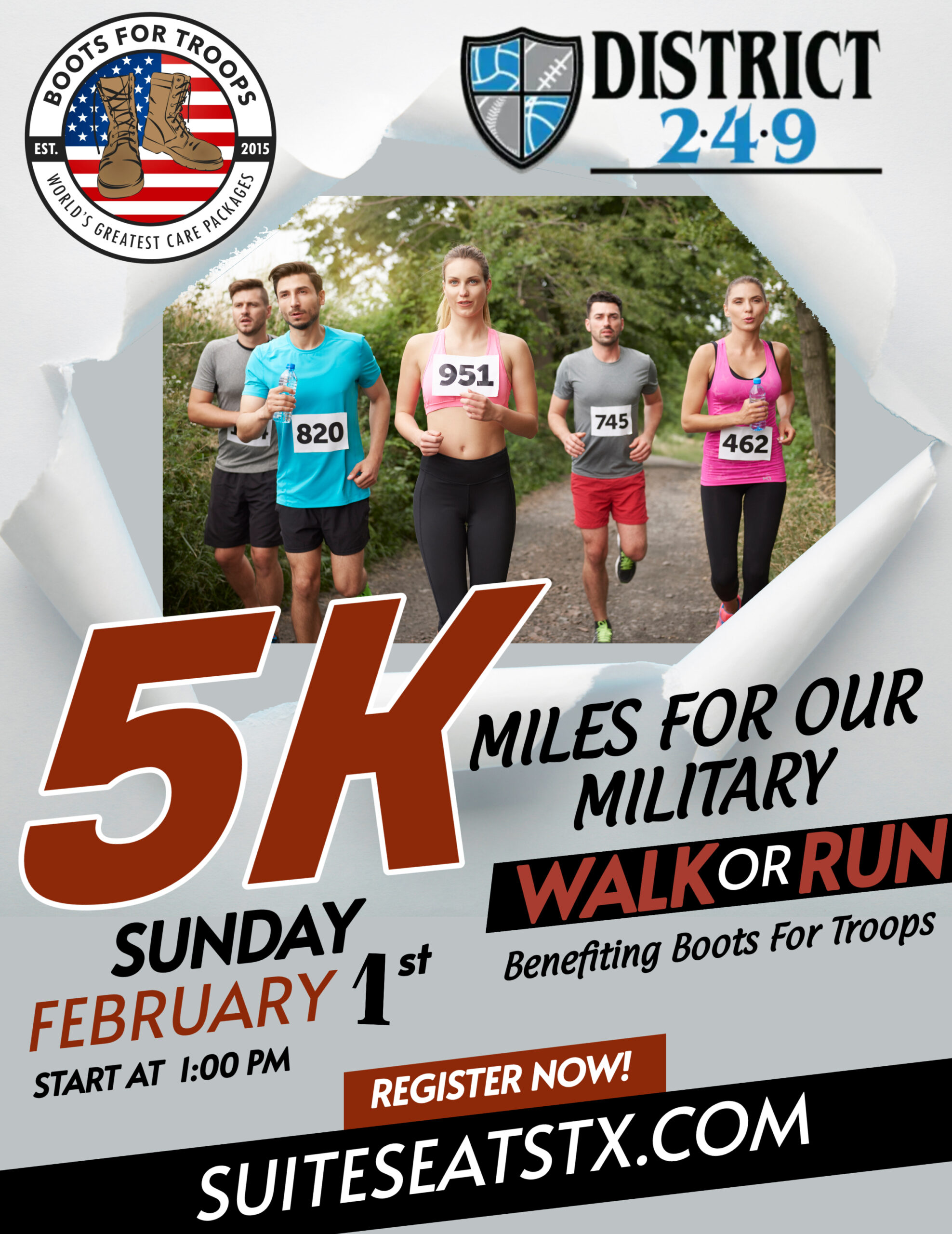 Get ready to lace up for a cause that hits close to home! Join us for the Boots For Troops 5K Miles For Our Military Run/Walk, a special event to raise money for Boots For Troops, which sends “The World’s Greatest Care Packages” to our deployed troops around the world.